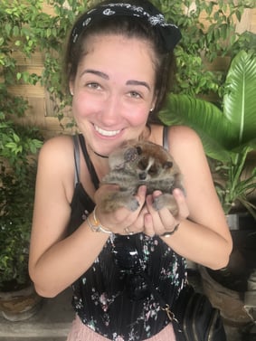 Unser Bootsfahrer liess uns bei einem grossen Betonplatz auf dem Fluss raus. Noch mehr Stände, noch mehr Essen, noch mehr Einkaufsmöglichkeiten. Man hatte die Möglichkeit Fotos mit Schlangen zu machen oder mit einem der sogenannten "Slow Loris" (DE: Plumloris). Ich konnte mich wirklich nicht zurück halten. Ich habe versucht mich zu beherrschen aber der kleine Slow Lori war so extrem niedlich, dass ich ihn wirklich halten musste. Es ging nicht anders. Ich konnte ihn streicheln und er war so zufrieden. Er gähnte, klammerte sich an mich und war einfach nur SÜSS UND FLAUSCHIG. Fabio hat ein Foto von mir gemacht. Anbei seht ihr eine sehr glückliche Nicole :-D