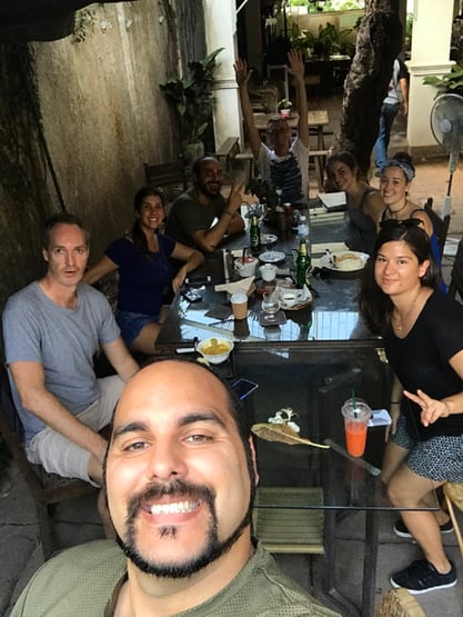 Heute sind wir gegen den Mittag nach draussen. Bei Couchsurfing (App in welcher man Treffen und Events mit unbekannten Locals oder Reisenden organisieren kann) haben wir gesehen, dass ein sogenannter "Hangout" in der Nähe stattfindet. Wir sind ca 1h in einen der Pärke in Chiang Mai gelaufen um dort drei unbekannte Personen zu treffen und mit ihnen "abzuhängen". Es waren zwei Personen aus Deutschland und jemand aus Brasilien (lebt aber in den USA). Wir hatten tolle Gespräche und haben dann auch über den Rest des Tages gesprochen. Wir wollten nämlich heute an den grossen Sunday Walking Street Market in Chiang Mai gehen und die anderen haben dies auch geplant. Wir haben uns also entschlossen, dass wir gemeinsam hingehen. Im "Hangout" haben sich dann immer mehr Leute gemeldet. Wir haben uns dann auf den Weg in ein Restaurant gemacht, da wir recht hungrig waren und aus 5 Personen wurden dann plötzlich etwa 10. Wir haben gegessen, getrunken und hatten einen tollen Nachmittag. Jemand wollte morgen einen Ausflug nach Chiang Rai machen um die Tempel anzusehen. Wir sind nun zu fünft und gehen morgen gemeinsam um 7:00 Uhr los :-) Es ist toll so spontan zu sein und mit irgendwelchen fremden und trotzdem absolut tollen Leuten einen Ausflug zu machen!