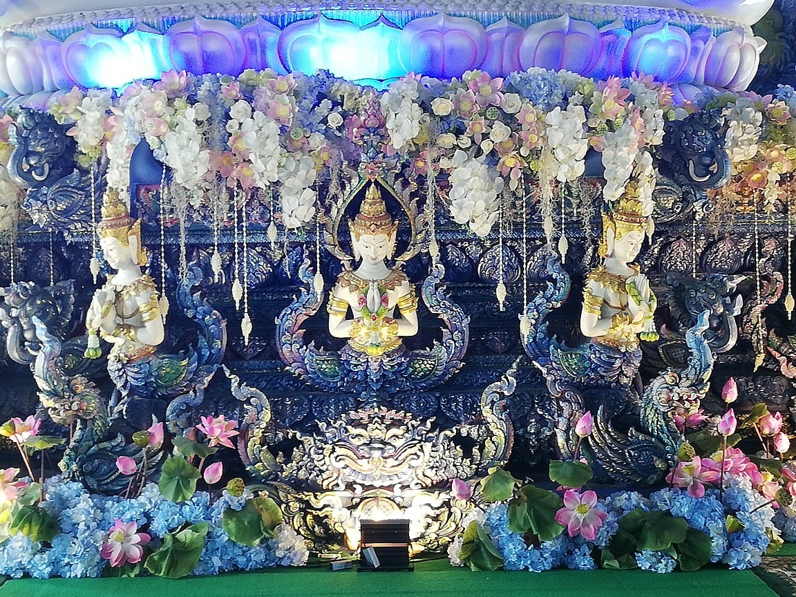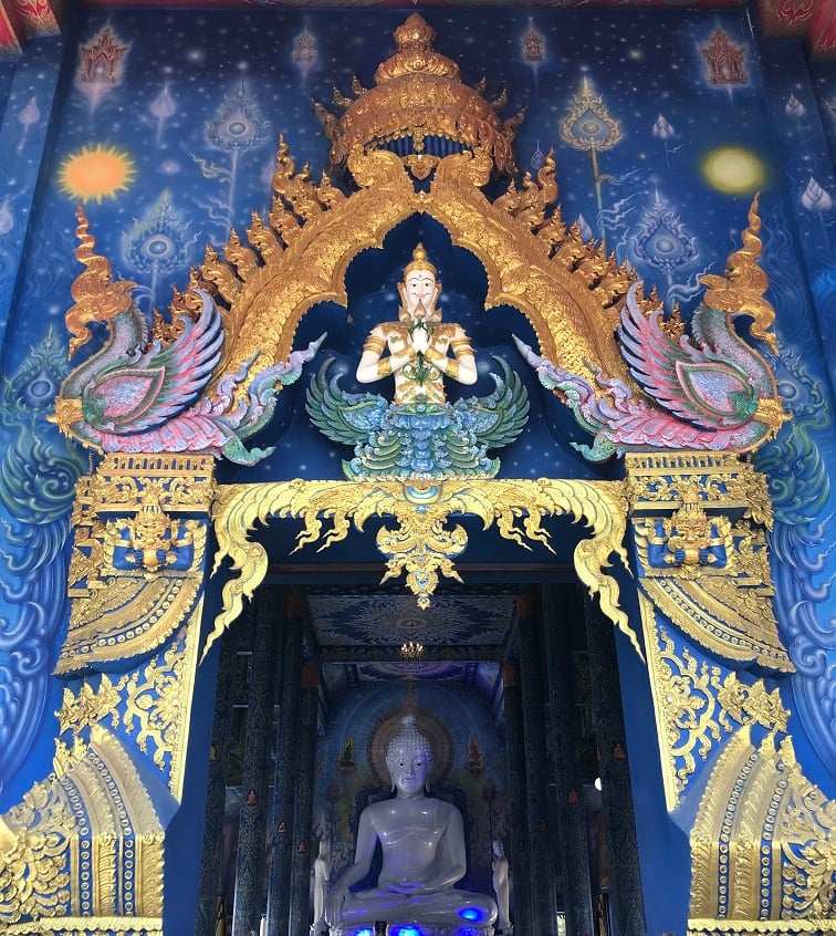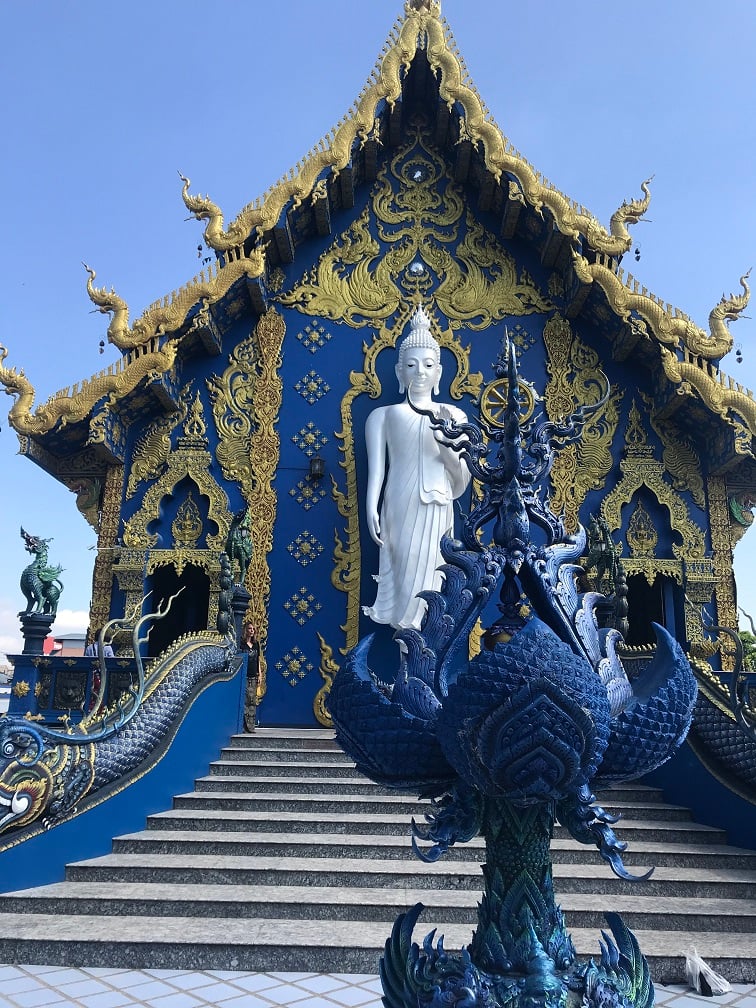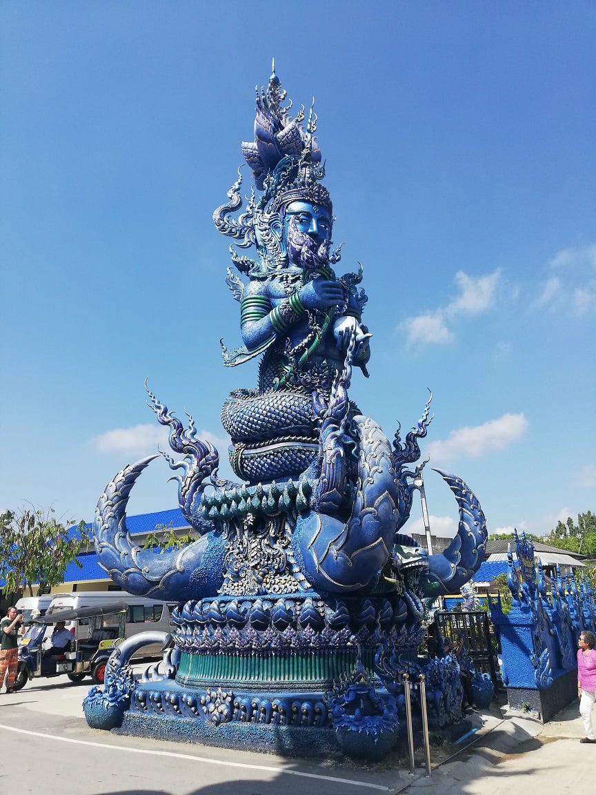 3. Halt: Der Wat Rong Seur Ten/"Blue Temple" ist beinahe so schön wie der "White Temple" aber etwas kleiner. Dieser wurde einiges später gebaut und ist bereits fertig errichtet. Der Tempel war ein Werk eines Schülers von Chalermchai Kositpipat.