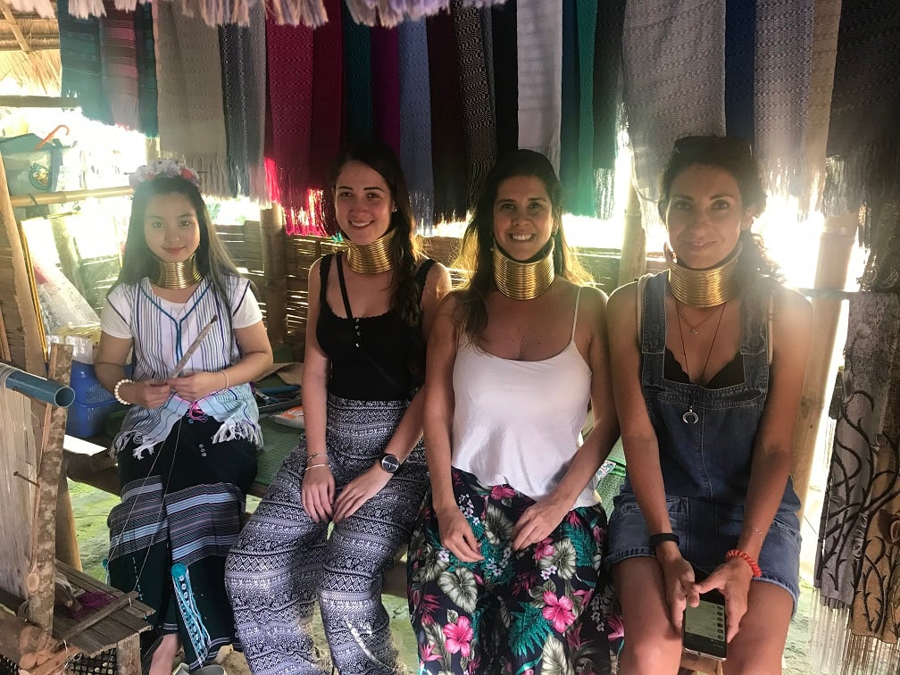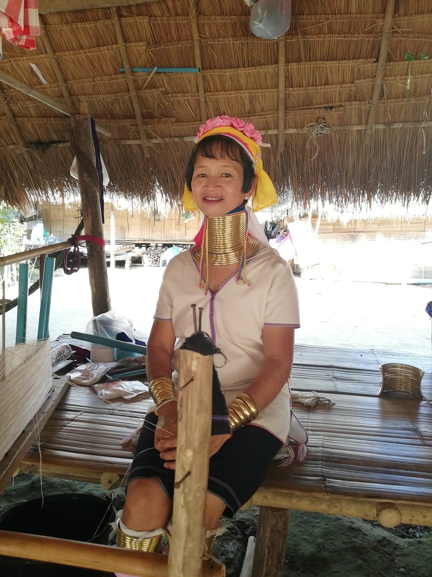 5. Halt: Wir haben heute zudem das Dorf der Long Neck Karen (auch Karen-Padung) besucht. Es gibt drei Padung Dörfer in Thailand und alle drei liegen in der Nähe der birmanischen Grenze in der Nähe von der Stadt Mae Hong Son. Die Padung flüchteten von Burma nach Thailand aufgrund politischer Probleme.