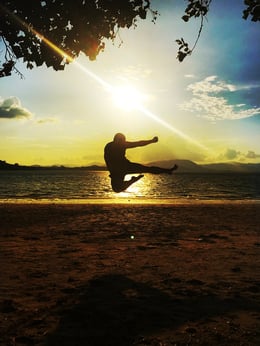 Heute war Strand angesagt. Da ich mich schon verbrannt habe, bin ich etwas im Schatten auf meinem Badetuch gelegen. Jessi hat sich dann etwas später auch dazu gesellt. Fabio und Adi wollten in der markierten Zone noch eine ganze Runde schwimmen. Sie sind dann plötzlich auch zurück gekommen, da es wohl Quallen hatte. Die hellblauen, durchsichtigen Quallen. Fabio hat seinen Badeschuh noch verloren, weshalb ich ihm dann gesagt habe "Hey, du könntest doch den Typen mit dem Boot fragen, ob er ihn dir holt". Schlussendlich endete dann die ganze Geschichte so, dass wir eine Bootstour zu der Rocket Island gemacht haben für total 1'800 Baht.
