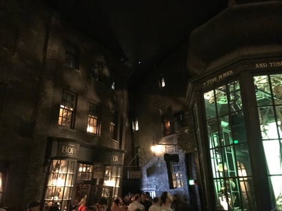 Wir liefen in die kleinen Shops und waren begeistert von dem detailreichen Harry Potter-Viertel. Wir haben dann auch an einer kleinen Show teilgenommen in einem der Shops. Per Zufall wurde ich für die Show ausgewählt.