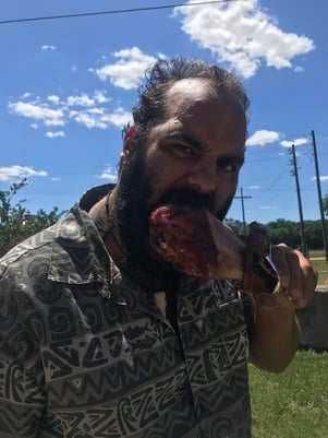 Wir zogen dann unsere Runden. Fabio ass sein "Turkeyleg" und ich ass eine "Mac and Cheese-Pizza".