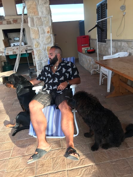 Fabio hat sich natürlich auch sehr gefreut, dass er seinen Vater wieder sehen konnte, welcher zurzeit auch in Italien ist. Und Donato, sein Vater, ist nicht alleine. Auf seinem Grundstück befinden sich die tibetanische Mastiffhündin Giada und die Rottweilerhündin Misha. Die kleine Mastiffhündin, erst 4 Monate alt, ist noch total verschmust, aber auch Misha ist noch sehr verspielt mit ihren 2 Jahren. Dennoch ist sich Misha ihrem Job bewusst. Grundstück verteidigen und bellen was das Zeug hält, wenn sich jemand nähert ;-)